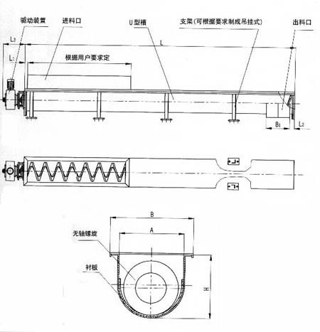 WLS無軸螺旋輸送機結構圖
